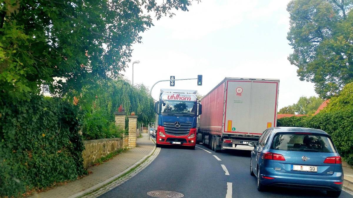 Bereits lange im Vorfeld des TOP 5 haben die Gemeinderäte der Fraktion Die Linke sich mit dem steigenden Verkehrszahlen, sowie der daraus resultierenden erhöhten Gefährdung der Verkehrsteilnehmer, beschäftigt. So wurde dieser Aspekt bereits im April dieses Jahres als ein wichtiges Maßnahmenbeispiel im OEK der Gemeinde aufgenommen. Unter Abwägung verschiedener Optionen haben wir den im Wortlaut nebenstehenden Antrag, ein LKW-Fahrverbot für Fahrzeuge über 7,5 t (mit speziellen Ausnahmen) im Bereich der Ortsdurchfahrt S177 beim Landesamt für Straßenbau und Verkehr zu erwirken, eingebracht. Das vordergründige Ziel ist es den nach alternativen Routen suchenden Schwerlastverkehr zurück auf die vorgesehenen BAB 4 und 13 zurückzudrängen.